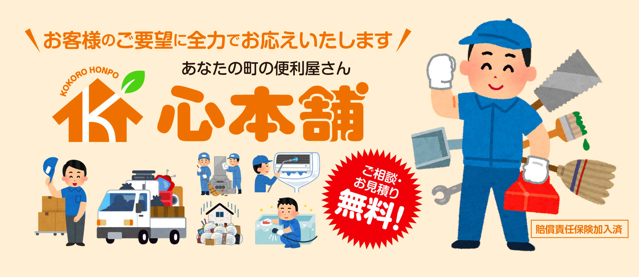 心本舗は、日常生活の「困った!」を解決する地域密着型の便利屋サービスです。